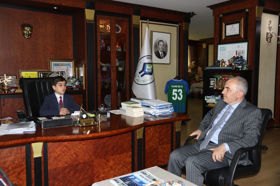 23 Nisan Ulusal Egemenlik ve Çocuk Bayramı dolayısıyla Denizciler İlkokulu öğrencisi Rıfat Asaf İslamoğlu beraberinde İl Milli Eğitim Müdürü Yusuf Tüfekçi, Milli Eğitim Şube Müdürü Eyup Sönmez ve Okul Müdürü Süleyman Yılmaz ile birlikte Rize Belediye Başkanı Rahmi Metin’i makamında ziyaret etti.