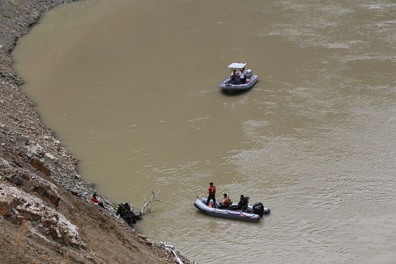 Dalgıçların titizlikle sürdürdüğü çalışmayı ailesi de nehir kenarında yakından takip ediyor.