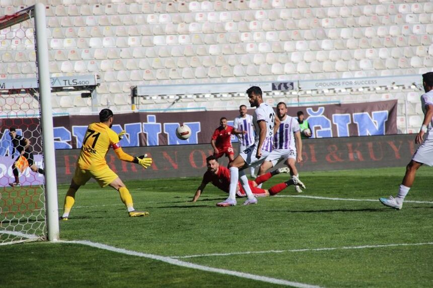 24. dakikada sağ kanattan yapılan ortayla ceza sahası içerisinde topla buluşan Mustafa Yumlu’nun röveşatasında meşin yuvarlak üstten dışarıya çıktı.