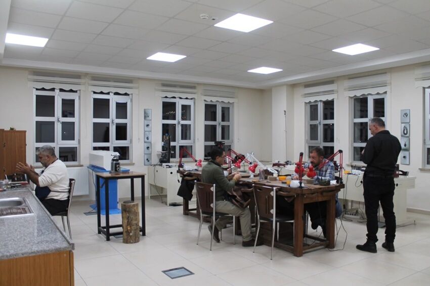 Kehribar, Erzurum’un Oltu taşından daha önemli bir taştır. Oltu taşı bildiğiniz fosilin kendisidir. Kehribar ise amber dediğimiz, çamın kendi reçinesinden oluşuyor ve sadece Bayburt’ta çıkıyor bu yönüyle çok değerli bir parça. Kehribarın tanıtılması lazım, onun içinde işlenerek hediyelik eşya haline getirilip insanların beğenisine sunulması gerekiyor. Bu atölyeyi kurma amaçlarımızdan biri de budur. Atölyemiz, geçtiğimiz yıl DOKAP projesi desteğiyle 350 milyon bütçe ile kuruldu. Atölyemizde, bu işe gönül vermiş kursiyerlerimizi eğiterek iş kurmalarını hedefliyor, amaçlıyoruz.