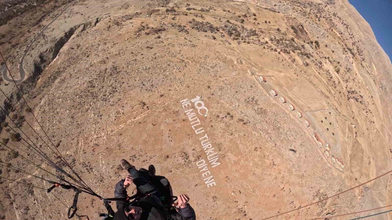 Her yıl çeşitli yamaç paraşütü uçuş etkinliklerinin yapıldığı Tut ilçesinde bu kez kanatlar 100’üncü yıl anısına açıldı. Yamaç paraşütü sporu için uygun hava ve iklim şartlarına sahip Tut ilçesinde, 100. Yıl anısına özel uçuş yapıldı. Paraşütlerde Türk bayrağı ve 100’üncü yıl yazılarının olduğu afişlerle paraşütçüler uçtu.