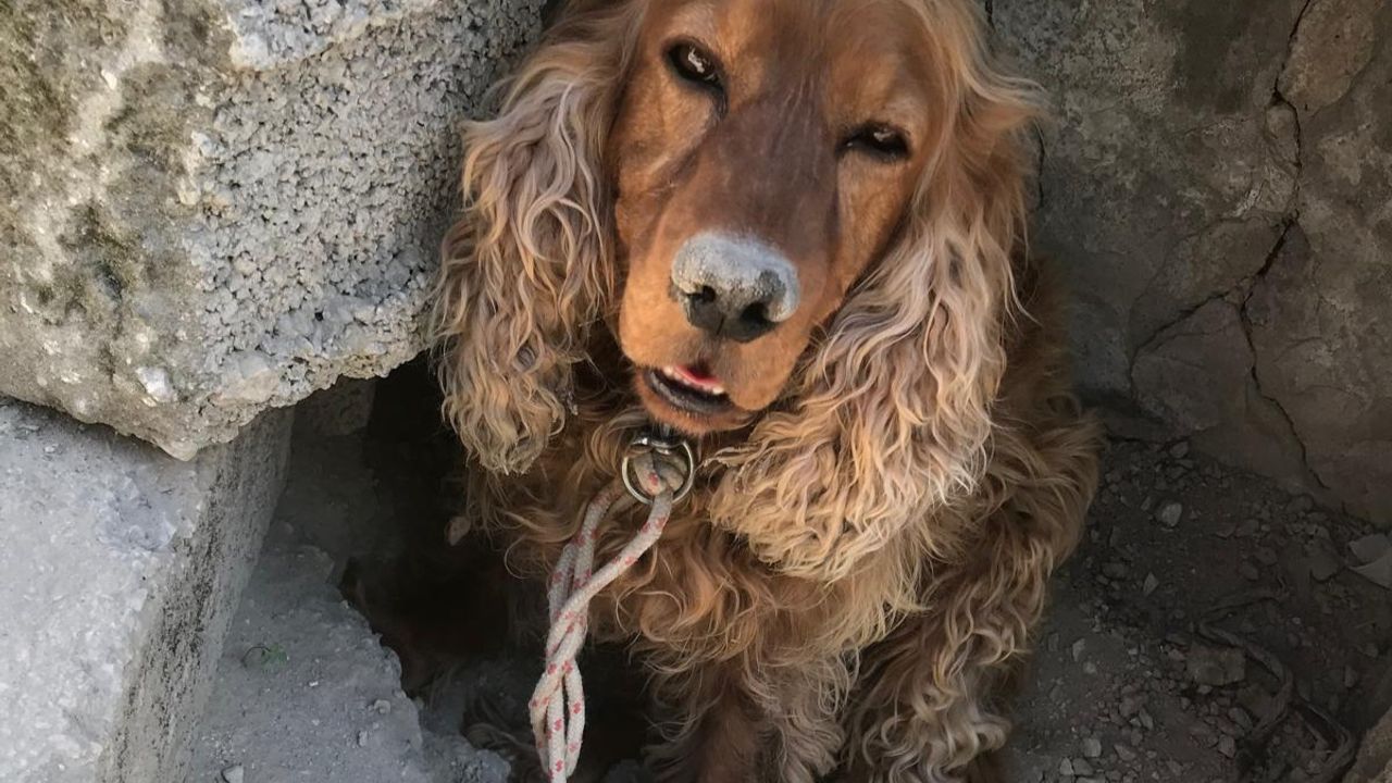 Alican GÜMÜŞ/HATAY, (DHA)-HATAY'ın Samandağ ilçesinde restoran işletmecisi Nergis Ekşi'nin 3 ay önce kaybolan İngiliz Cocker cinsi köpeği Çilek, boş arazide bir ağaca bağlı halde bulundu.