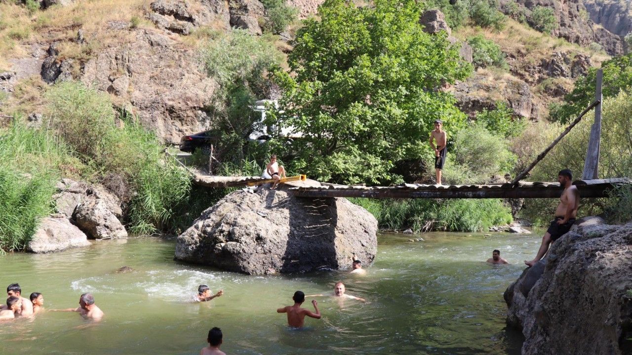 Yaz tatilini geçirmek için Ankara'dan geldiğini belirten Kenan Aydın ise "Sıcaklardan bunaldık. Serinlemek için Şenkaya'nın Lehsor Deresi'ne geldik. Burada serinliyoruz" dedi. (DHA)