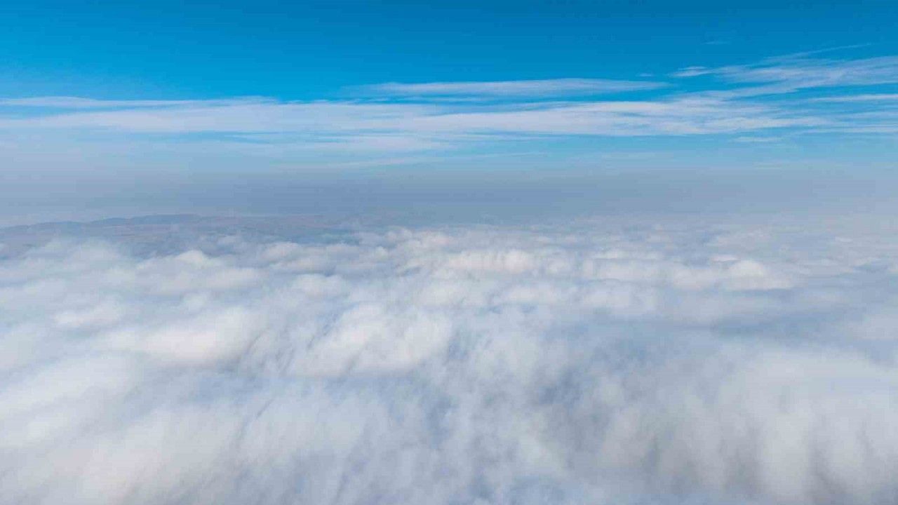 Kırıkkale’de etkili olan yoğun sis, kent merkezini tamamen kapladı. Yüzlerce metre yükseklikten kaydedilen görüntülerde şehir, adeta beyaz bir sis tabakasının altında kaldığı görüldü. Ana arterler, yüksek katlı yapılar ve yerleşim alanları sis bulutu içerisinde silik şekilde seçilirken, gökyüzünde beliren güneşle birlikte mavi tonların hakim olduğu ayrışan iki katman dikkat çekti. Yüksek noktalardan bakıldığında kent dokusu sis denizi üzerinde zaman zaman belirginleştiği anlarla görüntülere yansıdı. Yoğunluğunu sabah saatlerinde artıran sisin, öğle saatlerine doğru yer yer dağılmaya başladığı gözlendi.