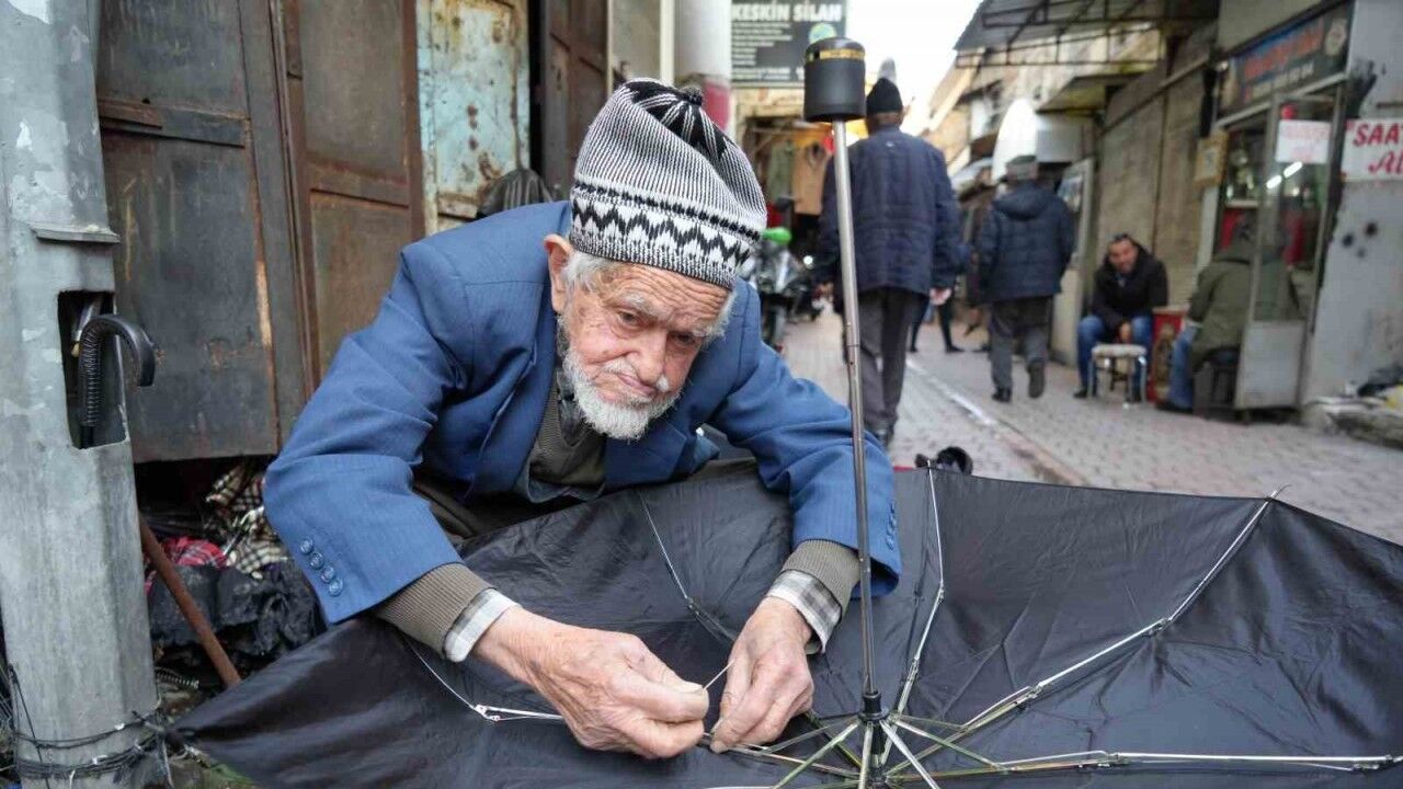 Dursun Yıldız, Samsun’un Bedesten Çarşısı’nda yaklaşık 70 yılı aşkın süredir esnaflık yapıyor. 94 yaşında olmasına rağmen sağlığı gayet yerinde olan Yıldız, büyük bir aşkla mesleğini icra ediyor. Mesleğinin Samsun’daki son temsilcisi olan 4 çocuk babası Yıldız, yaşıtlarına taş çıkarır bir vaziyette gözlüksüz olarak ipliği iğneye geçirip günde onlarca şemsiye tamir ediyor. Vatandaşlar kendilerine sıra gelmesi için 94 yaşındaki Dursun Yıldız’ın başında sıra bekliyorlar.