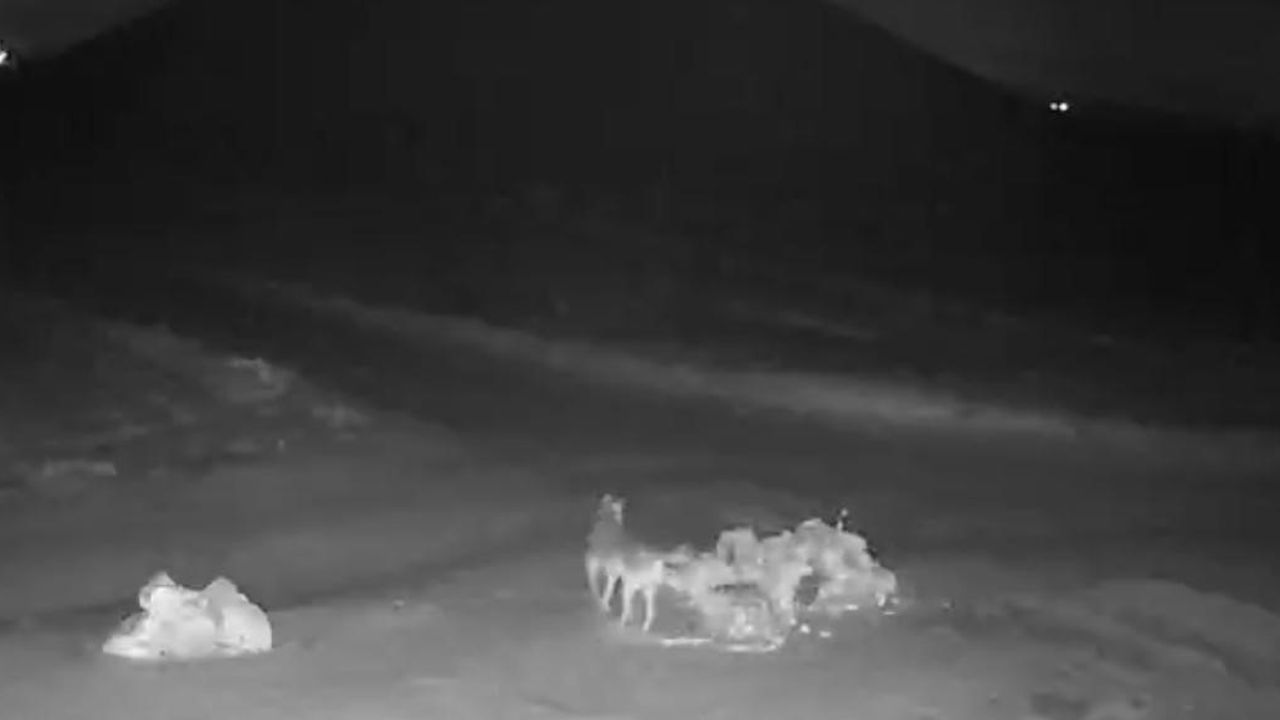 Nevşehir'de aç kalan kurtların köye indiği görüntüler güvenlik kameralarına yansıdı.