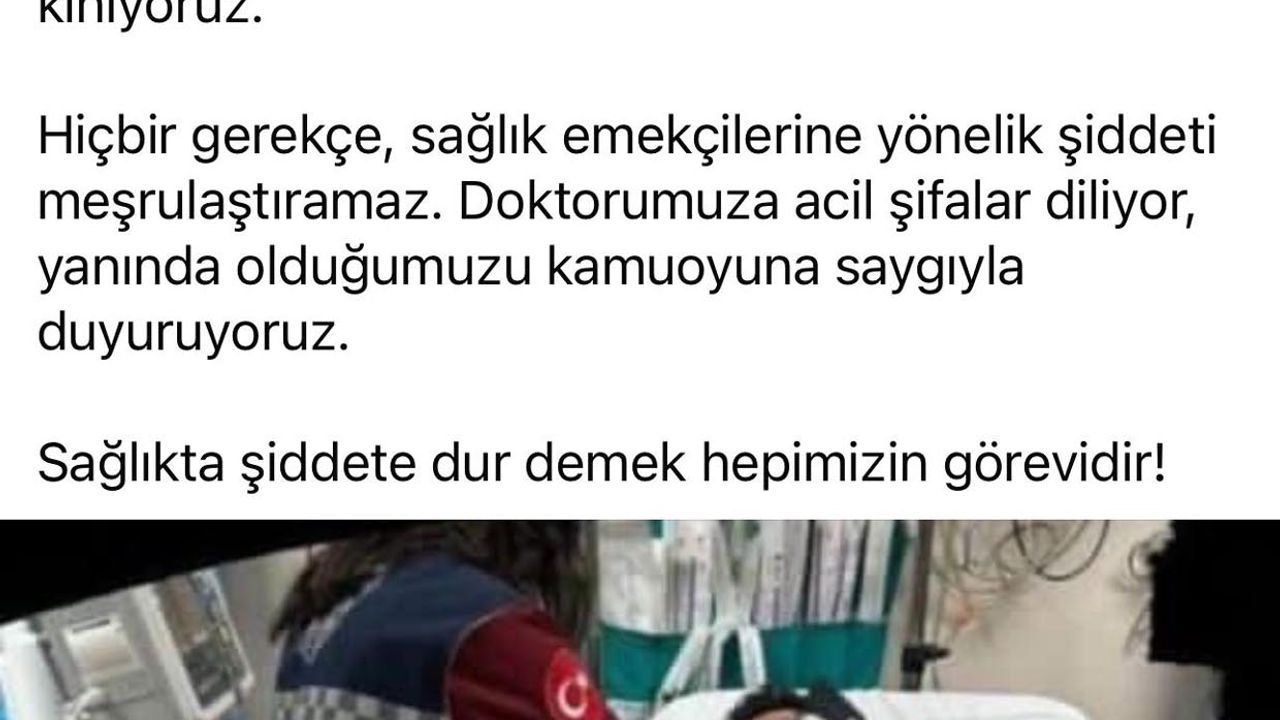 "7 Haziran 2025 tarihinde Iğdır Devlet Hastanesi Acil Servisinde görevli bir hekimimize yönelik kabul edilemez bir fiziki saldırı gerçekleştirilmiştir. Olayın hemen ardından ilgili hekime gerekli acil tıbbi müdahaleler yapılmış, müşahede altına alınarak tedavisine başlanmıştır. Şiddet olayının yaşanmasıyla birlikte derhal 'Beyaz Kod' verilmiş, güvenlik güçleri süratle olaya müdahale etmiş ve saldırgan şahıs gözaltına alınarak hakkında gerekli adli işlemler başlatılmıştır. Sağlık çalışanlarımız, fedakârca ve özveriyle 7/24 görev yaparken, böylesi insanlık dışı saldırılara maruz kalmaları asla kabul edilemez. Yaşanan bu menfur saldırıyı en güçlü şekilde kınıyor, meslektaşımıza geçmiş olsun dileklerimizi iletiyor, en kısa sürede sağlığına kavuşmasını temenni ediyoruz. Sağlıkta şiddetin hiçbir bahanesi, hiçbir gerekçesi olamaz. Tüm kamuoyunu sağlık çalışanlarımıza sahip çıkmaya, şiddete karşı durmaya davet ediyoruz."