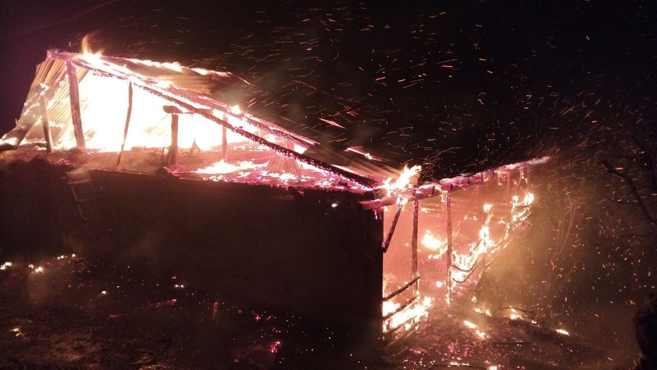 Adana'nın Feke ilçesinde bir ev ve ahır, çıkan yangında küle döndü.