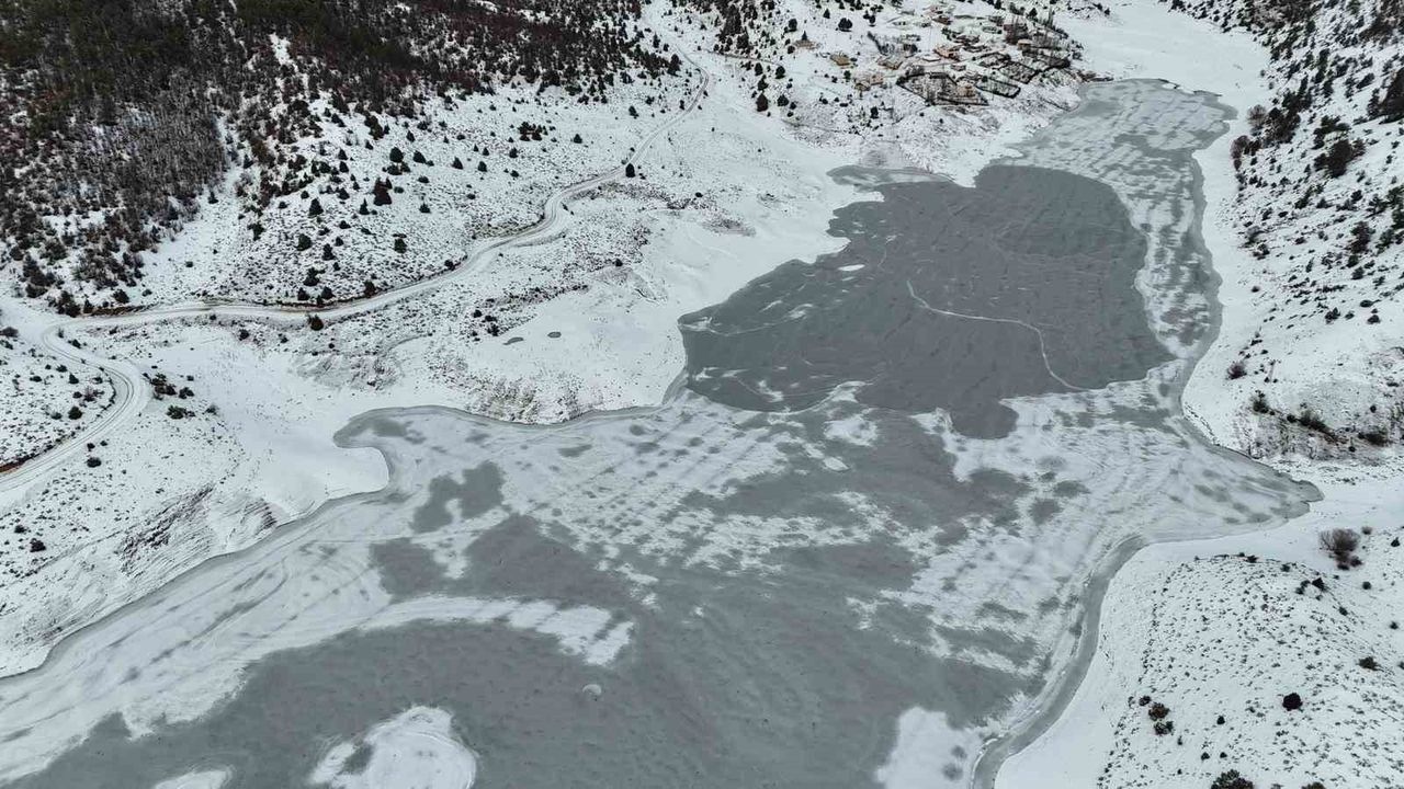 Tufanbeyli ilçesinde hava sıcaklığının eksi 25 dereceye kadar düşmesiyle Kürebeli Barajı tamamen buzla kaplandı. Dondurucu soğuklar, ilçede alışılmadık manzaralar oluştururken, barajın üzeri adeta doğal buz pistine dönüştü. Buz tutan barajı fırsat bilen çocuklar, gölün üzerinde kardan adam yaptı, kızakla kayarak doyasıya eğlendi. Ortaya çıkan görüntüler, ilçenin sert kış şartlarını bir kez daha gözler önüne serdi. Buz tutan baraj dronla da görüntülendi.