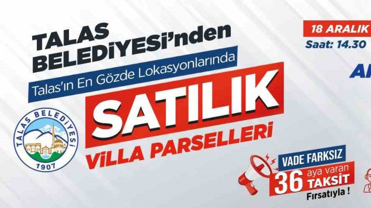 Akçakaya Mahallesi’nde yer alan 10 villa parseli, 18 Aralık 2025 Perşembe günü saat 14.30’da, Talas Belediyesi Meclis Salonunda düzenlenecek ihale ile satışa çıkacak. Bölgenin panoramik manzarası ve ulaşım kolaylığı, parsellerin değerini daha da artırıyor. Akçakaya’daki 4 ve Endürlük Mahallesi’ndeki 16 olmak üzere toplam 20 parsel için ikinci ihale, 25 Aralık 2025 Perşembe günü saat 14.00’te yine Meclis Salonunda yapılacak. Endürlük bölgesi, özellikle son yıllarda artan yatırım ilgisiyle dikkat çekiyor. Vatandaşlara ödeme konusunda kolaylık sağlayan Talas Belediyesi, parsellerde peşin ödemelerde yüzde 20 indirim ve 36 aya varan vade imkânı sunuyor. Bu avantajlarla villa parseli sahibi olmak daha erişilebilir hale geliyor.