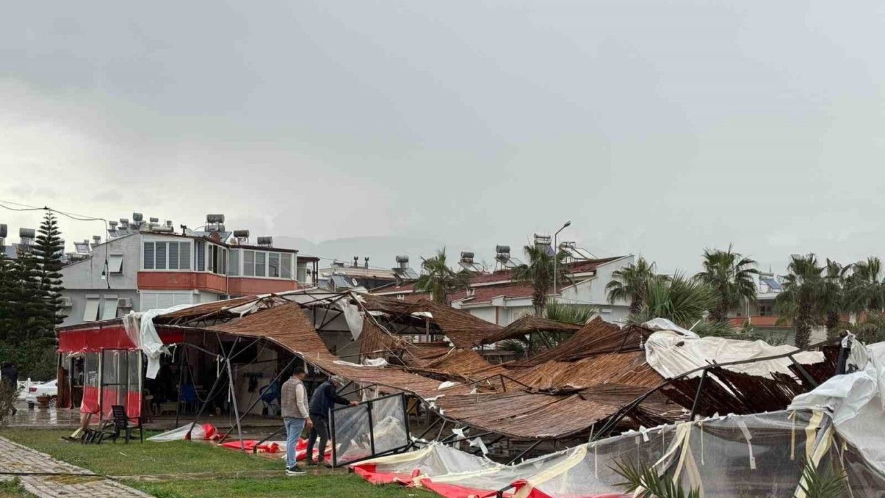 Mersin’in Bozyazı ilçesinde etkili olan hortum, kıyı şerindeki bazı iş yerlerine ile evlere zarar verdi.