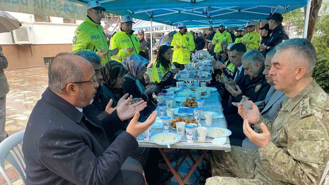 Manisa’nın Alaşehir ilçesinde geçtiğimiz günlerde trafik kazasında şehit olan polis memurları için meslektaşları tarafından lokma döktürülüp, mevlit okutuldu.