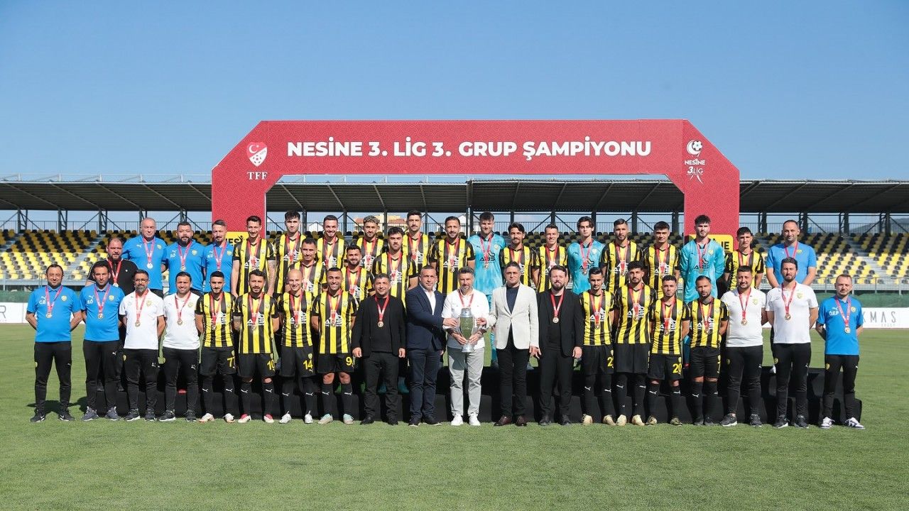 3'üncü Lig 3'üncü Grup'ta namağlup şampiyonluğa ulaşan Aliağa Futbol'da şampiyonluk kupası futbolcuların elinde yükseldi. Grupta son hafta 26 Nisan'da 1923 Mustafakemalpaşaspor'u deplasmanda 5-1 yenip, haftaya lider başlayan Ayvalıkgücü Belediyespor'un evinde takılmasıyla şampiyon olan Aliağa'da kupa futbolculara teslim edildi. Geçen hafta Türkiye Futbol Federasyonu 2'nci ve 3'üncü Lig Kulüplerinden Sorumlu Yönetim Kurulu Üyesi Murat Şahin tarafından kulüp tesislerinde Aliağa Belediye Başkanı Serkan Acar, Kulüp Başkanı Turgay Mete, Teknik Direktör Polat Çetin, takım kaptanları Mehmet Fuat Gölbaşı, Oktay Kancı ve Berke Bıyık'a teslim edilen kupayı tüm takım törenle havaya kaldırdı. Aliağalı futbolcular kupa ve madalyalarıyla birlikte şampiyonluk posteri çektirdi. Aliağa ekibi Bölgesel Amatör Lig'den çıktıktan sonra profesyonel ligdeki ilk iki sezonunu namağlup tamamlayarak 2'nci Lig'e ulaşmıştı.