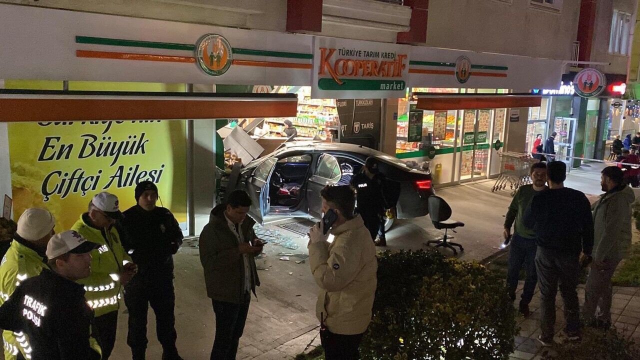Onur KAYA/ÇERKEZKÖY (Tekirdağ), (DHA)- TEKİRDAĞ’ın Çerkezköy ilçesinde yolun karşısına geçmeye çalışan 2 kardeşe çarpan otomobil, kaldırıma çıkıp 1 kişiye daha çarptıktan sonra markete girdi. Kaza anı güvenlik kamerasına yansırken, olay yerinden kaçtıktan kısa süre sonra yakalanan sürücü Mehmet Behiç B.’nin yapılan kontrolde 1,78 promil alkollü olduğu ve 4 gün önce de alkollü araç kullanırken yakalanıp, ehliyetine el konulduğu ortaya çıktı.