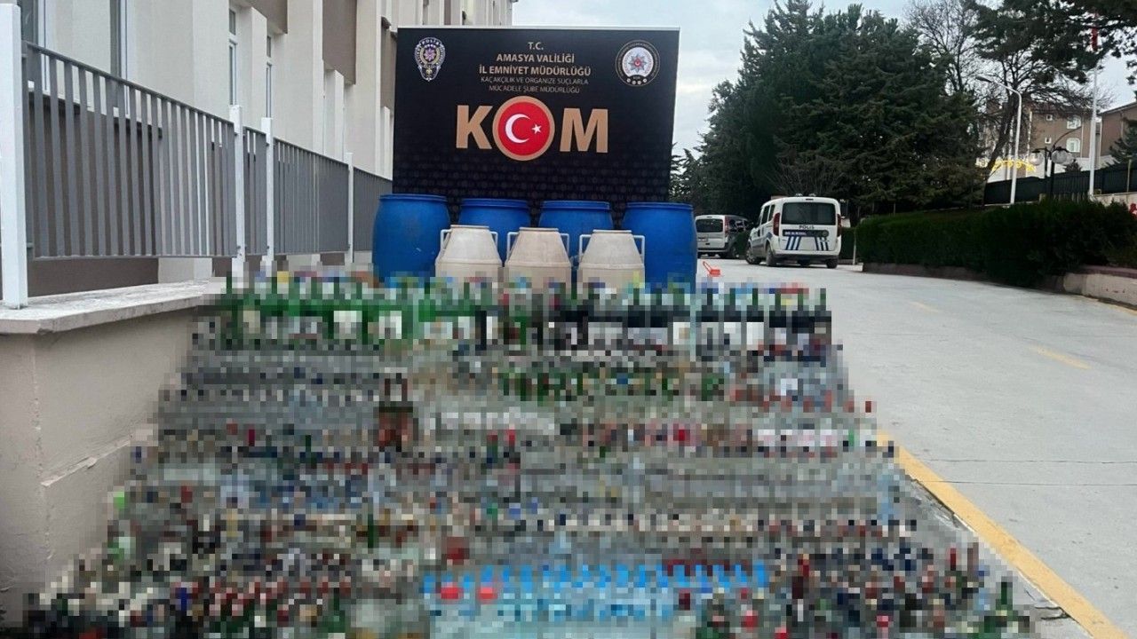 Edinilen bilgiye göre, Merzifon Cumhuriyet Başsavcılığı’nın koordinesinde, Amasya Emniyet Müdürlüğü Kaçakçılık ve Organize Suçlarla Mücadele Şubesi (KOM) ve Merzifon Asayiş Büro Amirliği ekiplerince kaçak alkol satışını önlemeye yönelik yürütülen müşterek çalışma kapsamında Merzifon ilçesinde faaliyet gösteren iki şüphelinin il dışından temin ettiği etil alkolü kullanarak el yapımı sahte/kaçak alkol ürettiği tespit edildi.