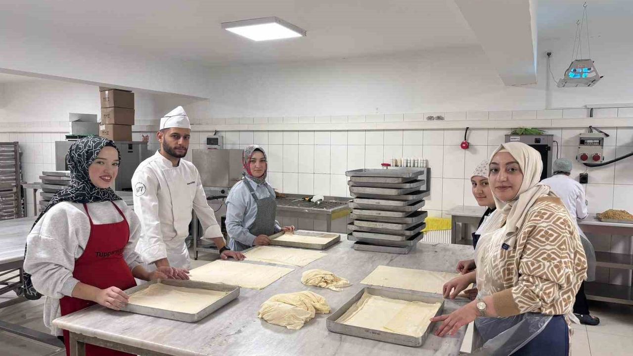Ankara Pursaklar Belediyesi'ne bağlı Hanım Evinde eğitim alan Pastacılık Sınıfı kursiyerleri, baklava ve böreğin yapımını imalathanede birebir uygulamayla deneyimledi.