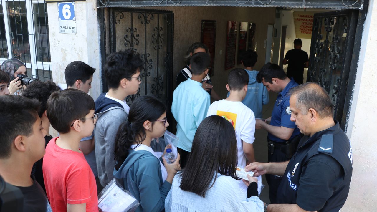 Okul önünde bekleyen aileler, en az çocukları kadar heyecanlı olduklarını belirterek, sınava giren tüm öğrencilere başarılar diledi. (DHA)