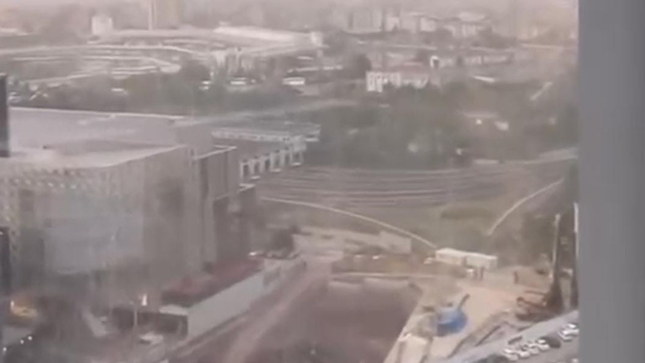 Umutcan ÖREN-Mehmet Gökhan HAKBİLİR/ANKARA, (DHA)- ANKARA'da şiddetli rüzgarla birlikte etkili olan sağanak nedeniyle cadde ve sokaklarda su birikintileri oluştu. Yapımı devam eden caminin minaresine düşen yıldırım sonrası yangın çıktı.