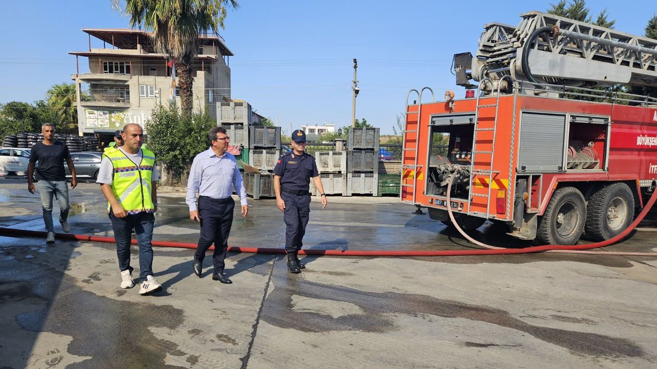 Antalya’nın Serik ilçesinde sabah saatlerinde pasta börek imalathanesinde çıkıp soğuk hava deposuna sıçrayan yangın söndürüldü. Kaymakam Cemal Şahin de yangın çıkan işletmeleri ziyaret ederek geçmiş olsun dileklerini iletti. Kaymakam Şahin, "Yukarıkocayatak Mahallesi'nde faaliyet gösteren işletmelerde çıkan yangın sonrası olay yerine sevk edilen itfaiye ekiplerimiz yoğun bir çaba sarf ederek yangını söndürdü. İki işletmemizde maddi hasara sebep veren yangın bizleri üzmüştür, tek tesellimiz can kaybının olmayışıdır. Her iki işletmemize ve çalışanlarına geçmiş olsun" dedi. (DHA)