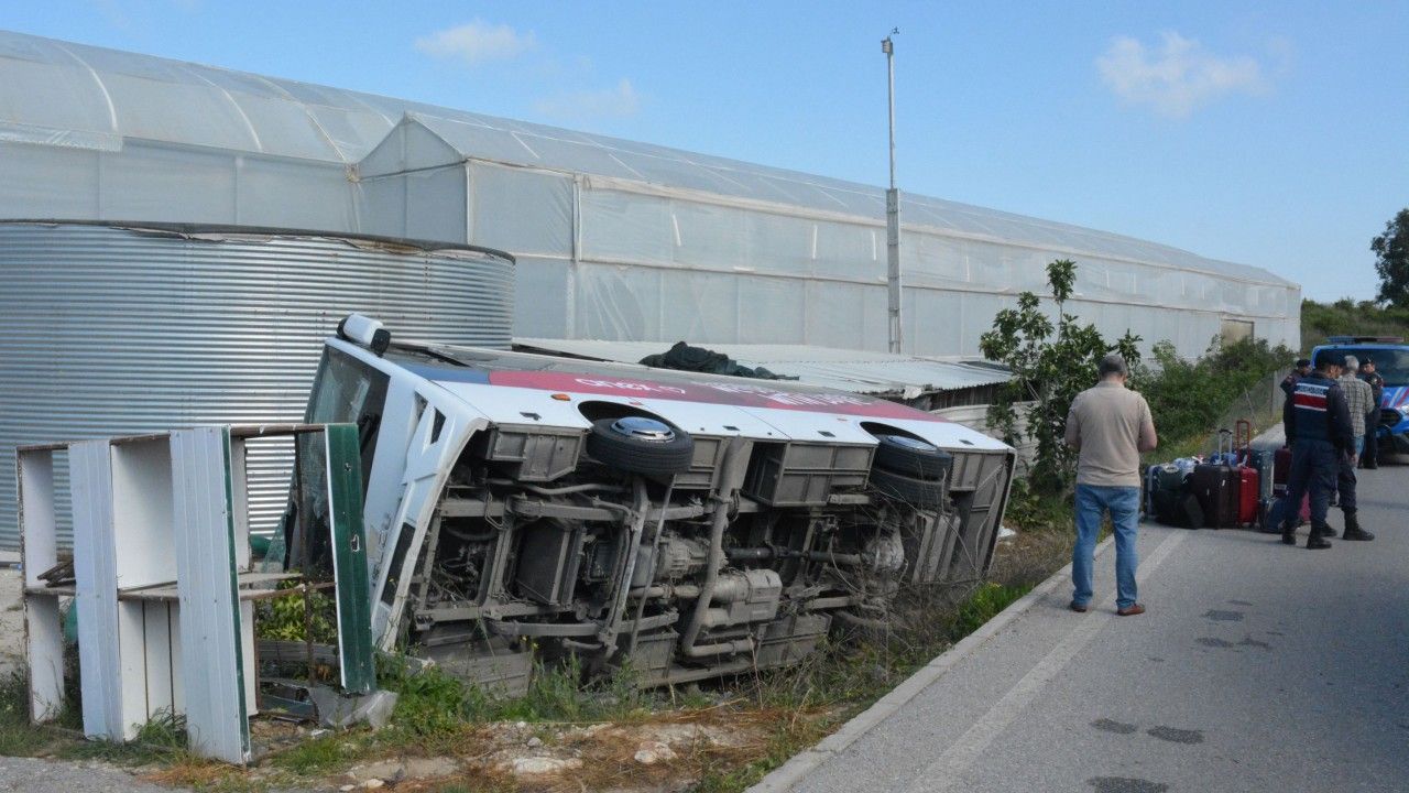 Manavgat'taki otellere turist taşıyan Fatih Karataş yönetimindeki 07 AVN 799 plakalı tur midibüsü, saat 08.00 sıralarında Gündoğdu Mahallesi'nde sürücünün hakimiyeti kaybetmesiyle yoldan çıktı. Minibüs, Yörük Mustafa Bey Bulvarı'nda seralar ile yol arasındaki bahçeye devrildi. İhbar üzerine olay yerine jandarma ve sağlık ekibi sevk edildi. Kazada yaralanan sürücü ile 18 Rus turist, sağlık ekibinin müdahalesinin ardından ilçedeki hastanelere götürüldü. (DHA)
