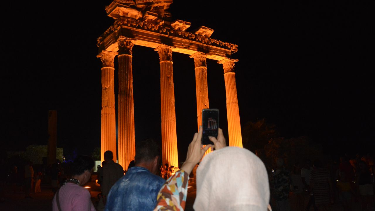 Ömer KARÇA/MANAVGAT (Antalya), (DHA)- ANTALYA'nın Manavgat ilçesinde turistler, kanlı ay tutulmasını Apollon Tapınağı manzarası eşliğinde izlendi.