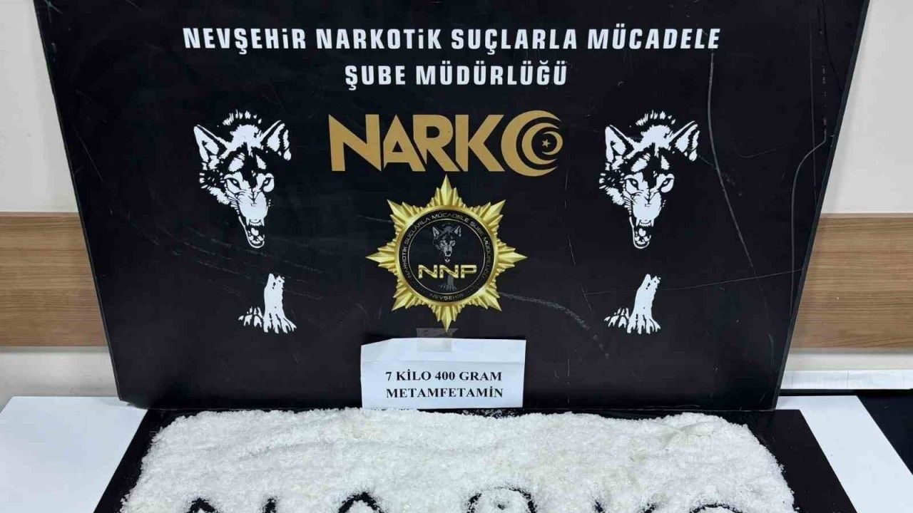 Nevşehir İl Emniyet Müdürlüğü Narkotik Suçlarla Mücadele Şube Müdürlüğü ekipleri, uyuşturucu madde ticareti yapan şahısların deşifresine yönelik yaptıkları çalışmada, Orhan K. isimli şüphelinin üst, eşya ve araç araması yaptı. Narkotik köpeği tarafından araçta yapılan aramada aracın stepnesinin içine gizlenmiş 7 kilo 400 gram uyuşturucu madde ele geçirildi. Gözaltına alınan Orhan K., emniyetteki işlemlerinin ardından Nevşehir Cumhuriyet Başsavcılığı’nın talimatıyla ’uyuşturucu madde ticareti yapmak’ suçundan adliyeye sevk edildi.