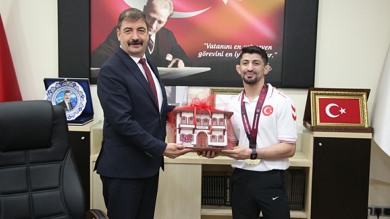 Hasan YİĞEN / KULA, (DHA)- SLOVAKYA'nın başkenti Bratislava'da düzenlenen Avrupa Güreş Şampiyonası'nda grekoromen stil 63 kilogramda altın madalya kazanarak Türkiye'ye büyük gurur yaşatan milli güreşçimiz Kerem Kamal, öğretmen olarak görev yaptığı Manisa'nın Kula ilçesinde coşkulu bir törenle karşılandı. Şampiyon güreşçi Kerem Kamal, beden eğitimi öğretmenliği görevini de sürdürdüğü Kula'da sevenleri tarafından kahraman gibi karşılandı. Şampiyon güreşçiye Kula Yaren Ekibi eşlik etti. Kerem Kamal, Yaren ekibi eşliğinde şehir turu atarak hemşehrilerini selamladı. Şehir turunun ardından Kerem Kamal, görev yaptığı Fatih Ortaokulu'na geçti. Burada öğretmen arkadaşları ve öğrenciler tarafından büyük bir sevgi seliyle karşılanan Kamal'a, okul müdürü Güngör Zobudoğuş tarafından çiçek takdim edildi. Törende duygu dolu anlar yaşanırken, Kerem Kamal'ın başarısı öğrencilere ilham kaynağı oldu.