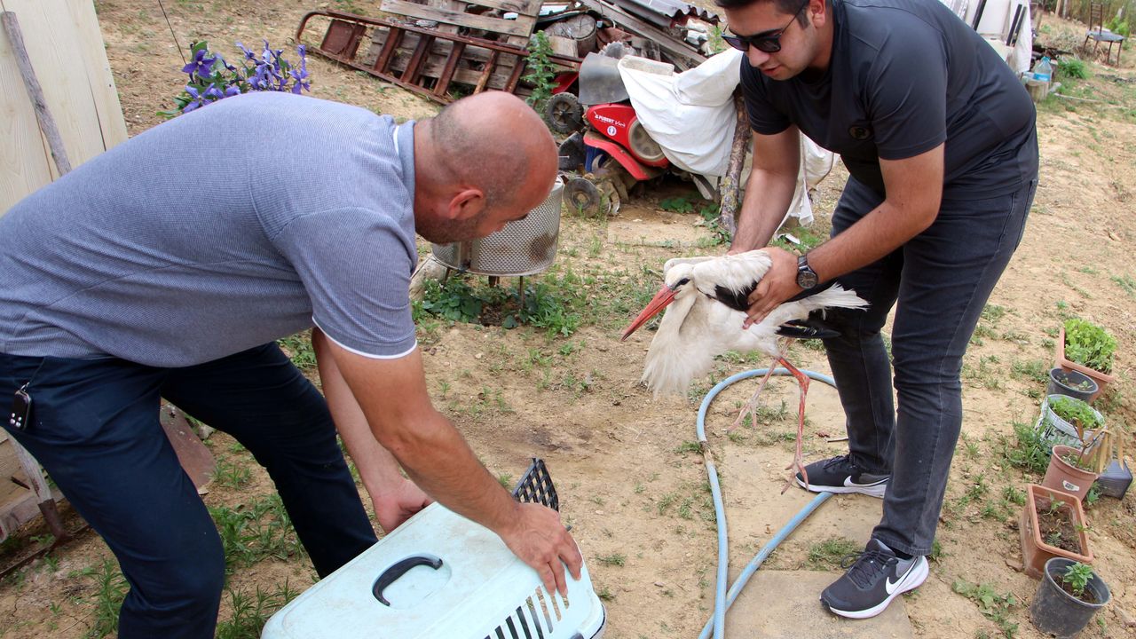 Hüseyin Amaç, leyleğe çok alıştıklarını belirterek, "4 gün önce geldi bahçeye, sanıyorum düştü yaralı olduğu için. İlk gün gitmedi, ikinci gün gitmedi. O zaman anladık ki yaralı. Uçmaya çalıştı biraz ama gidemedi. Biz de hiç tutmak için uğraşmadık. Kaçmaya kalkar, bizden korkar diye rahatsız etmek istemedik. Sonra su ve balık vermeye başladık. Aradan geçen sürede bize alıştı. Yemek verdiğimiz için o da bize alıştı. Bahçede otururken gelip yanımızdan geçiyor hiç korkmadan. 4 gündür bu şekilde beraber yaşıyoruz. Yetkililere haber verdik, umarım gelip alırlar ve tedavisini yaparlar. Alıp götürdükleri zaman da aklımız onda kalacak, takip edeceğiz tedavisinin yapılıp yapılmadığını" dedi.