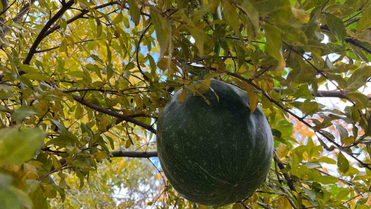 Denizli’nin Buldan ilçesi Turan Mahallesi’nde bahçeye ekilen kabak, nar ağacının tepesinde meyvelerini verdi. Bahar aylarında kabak çekirdeklerini toprağa gömdüğünü belirten Memnune Acıkara, "Kabaklar dökecek diye çok uzun süre bekledim. Sulamasını yaptım, yabani otlarını temizledim. Her tarafa kol attı ancak bir türlü meyveye dönmedi. Ben artık kış geldi bu zamandan sonra meyve vermez diye düşünüyordum. Daha sonra iki nar ağacımın tepesinde kabakların olduğunu gördüm. Toprakta yetişmeyen kabaklar nar ağaçlarında yetişti. Bugüne kadar böyle bir şey hiç görmedim duymadım. Emeklerim çok şükür boşa gitmedi" dedi.