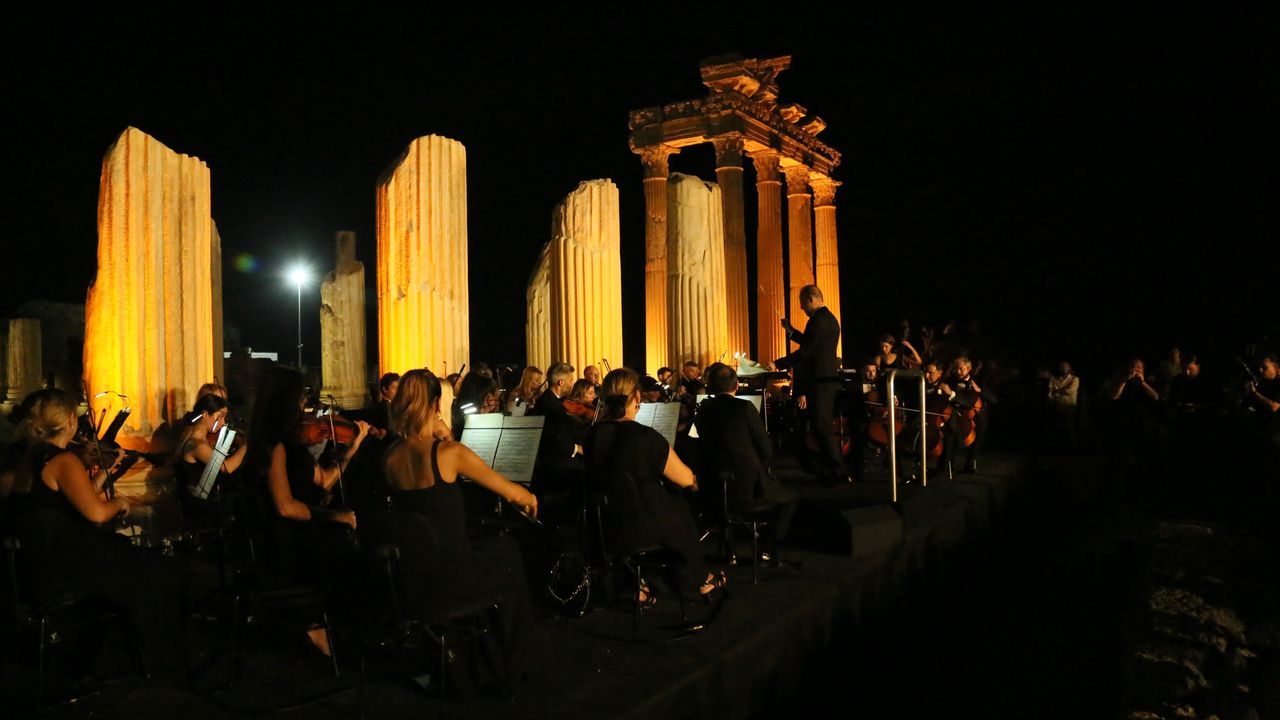 Side Müzesi’ndeki programın ardından Bakan Ersoy, yürüyüş yaparak Side Tapınaklar Alanı’na geçti. Athena Tapınağı önündeki Geleceğe Miras gece konserini izledi. (DHA)