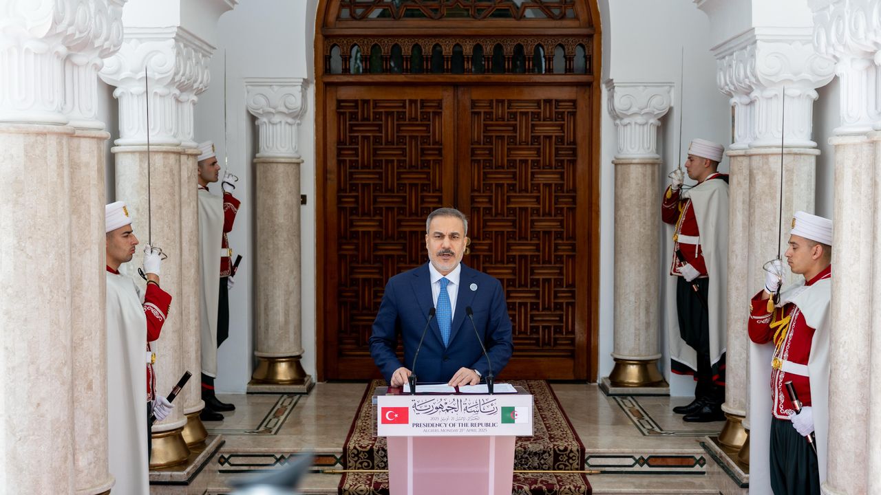 Dışişleri Bakanı Hakan Fidan, Cezayir’e yaptığı resmi ziyaret kapsamında Cezayir Cumhurbaşkanı Abdülmecid Tebbun tarafından kabul edildi. Bakan Fidan kabul sonrası Cumhurbaşkanlığı Sarayı'nda açıklamalarda bulundu. Fidan, kardeş Cezayir'i ziyaret etmekten büyük memnuniyet duyduğunu belirterek, "Cumhurbaşkanı Sayın Tebbun tarafından kabul edildim. Kendilerine Sayın Cumhurbaşkanımızın selamlarını ilettim. İnşallah Cumhurbaşkanı Sayın Tebbun'u bu yıl içerisinde yüksek düzeyli stratejik işbirliği toplantısı için Türkiye'de ağırlama imkanımız olacak. Cumhurbaşkanı Tebbun'un liderliğinde Cezayir'in önemli bir ekonomik gelişme kaydettiğini görüyoruz. Keza Cezayir'in uluslararası meselelere ilişkin görüşleri ve izlediği siyaset büyük oranda önem taşıyor. Cezayir sahip olduğu kapasite ve imkanlarla bu bölgedeki istikrarın garantilerinden biri haline gelmiştir. Cezayir'in Birleşmiş Milletler Güvenlik Konseyi geçici üyesi olarak sergilediği performansı da memnuniyetle izliyoruz. Bölgemizin önceliklerinin ve sorunlarını Cezayir tarafından Birleşmiş Milletler Güvenlik Konseyi'nin gündemine başarı ile taşındığını görmekteyiz. Sayın Cumhurbaşkanımızın ve Cumhurbaşkanı Tebbun'un liderlikleri sayesinde Türkiye ve Cezayir arasındaki ilişkiler giderek güçlenmekte. Liderlerimizin ortaya koyduğu ülkelerimiz arasındaki en önemli bağ karşılıklı güvendir. Biz her konuda Cezayir'e güveniyoruz. Türkiye'de her zaman Cezayir için güvenir bir dost olacaktır. Sayın Attaf'la bu sabah gerçekleştirdiğimiz ortak planlama grubu toplantısında, farklı kurumlarımızın katılımıyla ticaret, ulaştırma, göç ve sağlık gibi pek çok alanda atabileceğimiz adımları görüştük. Toplam ticaret hacmimizi en kısa süre içinde 10 milyar dolara çıkarabileceğimize inanıyoruz. Cezayir'de bulunan yaklaşık 1400 Türk firması, ekonomiye ve istihdama katkı sağlamakta. İnşallah tercihli ticaret ve yatırımların karşılıklı teşviki gibi konularda imzalayacağımız anlaşmalarla ekonomik ilişkilerimizi daha da derinleştirme imkanımız olacak" ifadelerini kullandı.