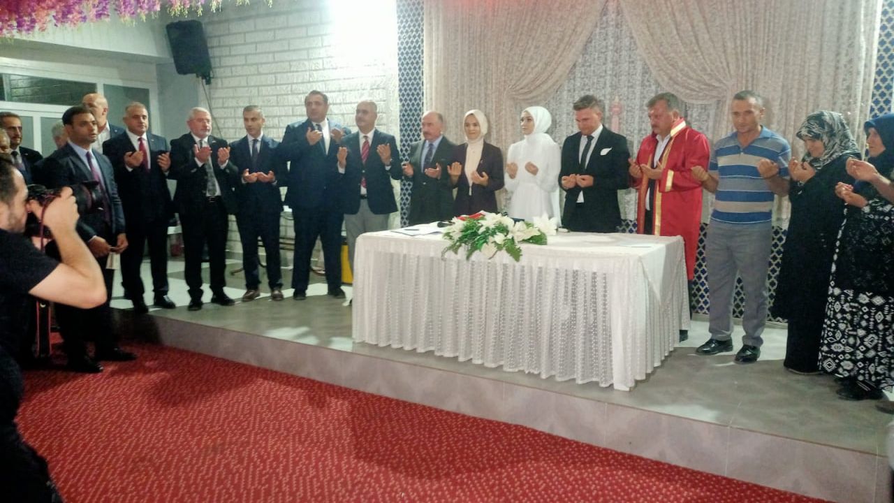 Açılışın ardından Bakan Göktaş, bakanlığın hayata geçirdiği Aile ve Gençlik Fonu aracılığıyla düğün masraflarını karşılayan Tuğba- İsmail Karakuş çiftinin nikah törenine katıldı. Bakan Göktaş, çifte Türk bayrağı hediye etti. (DHA)