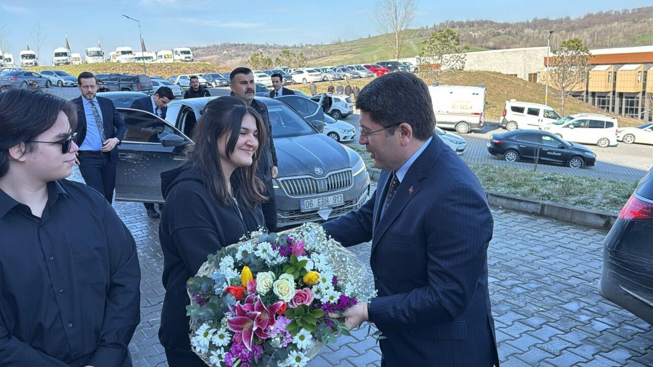 Bakan Tunç, lise öğrencilerinin sorularını yanıtladıktan sonra Ulus Adalet Sarayı Temel Atma ve Doğal Gaz Hattına Gaz Verilme törenlerine katılmak için Ulus ilçesine hareket etti. (DHA)