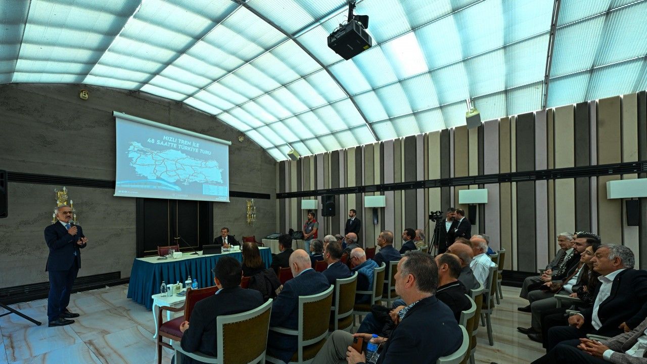 Ankara-İstanbul arasında yeni bir demir yolu hattı düşündüklerini belirten Bakan Uraloğlu, Ankara-İstanbul arasında süper hızlı trenin saatte 350 kilometre hızla gideceğini ve seyahat süresinin ise 80 dakika süreceğini belirtti. (DHA)