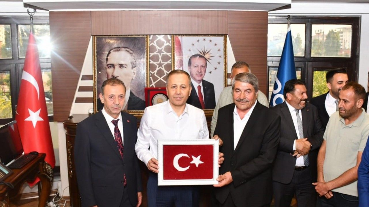 Ağrı'ya çeşitli temaslar ve ziyaretler için gelen İçişleri Bakanı Ali Yerlikaya, karayoluyla gittiği Patnos’ta Kaymakam Burak Dertlioğlu, Belediye Başkanı Abdulhalik Taşkın, AK Parti İlçe Başkanı Çetin Taşdemir, Kadın Kolları Başkanı Gamze Yardımcı tarafından karşılandı. AK Parti Milletvekili Ruken Kilerci’yle Patnos Belediyesi'ni ziyaret eden Bakan Yerlikaya, burada ilçe belediye başkanlarıyla basına kapalı bir toplantı yaptı. Patnos Belediye Başkanı Taşkın, ziyaret anısına Bakan Yerlikaya'ya Türk Bayrağı işlenmiş tablo hediye etti. Bakan Yerlikaya, toplantının ardından karayoluyla Tutak ilçesine gitti. (DHA)