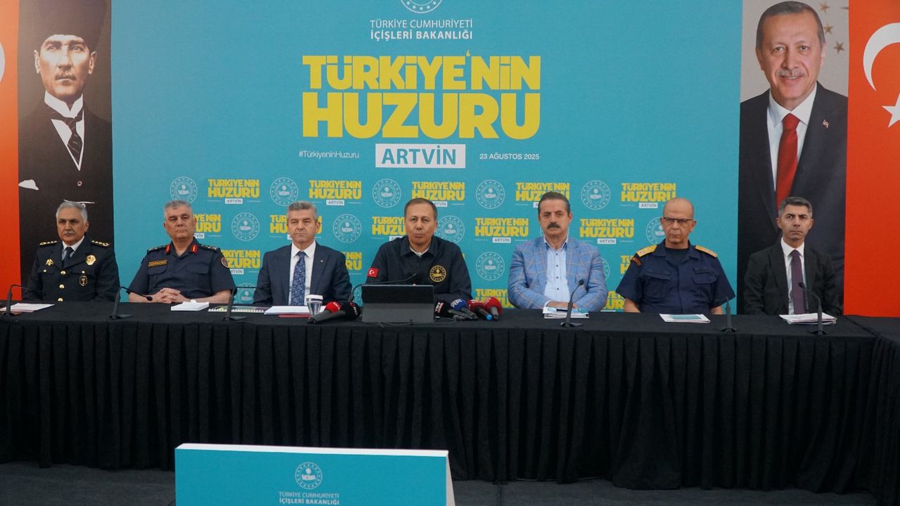 İçişleri Bakanı Ali Yerlikaya, geldiği Artvin'de düzenlenen 'Huzur ve Güvenlik Toplantısı'na katıldı. Sahil Güvenlik Komutanı Koramiral Ahmet Kendir, Jandarma Genel Komutanı Orgeneral Ali Çardakcı, Emniyet Genel Müdür Yardımcısı Ömer Urhal, Artvin Valisi Turan Ergün, AK Parti Artvin Milletvekili Faruk Çelik'in de katıldığı toplantı sonrası açıklamalarda bulunan Bakan Yerlikaya, toplantıda Artvin'in huzuru temelinde yürütülen asayiş ve güvenlik çalışmalarını değerlendirdiklerini söyledi.