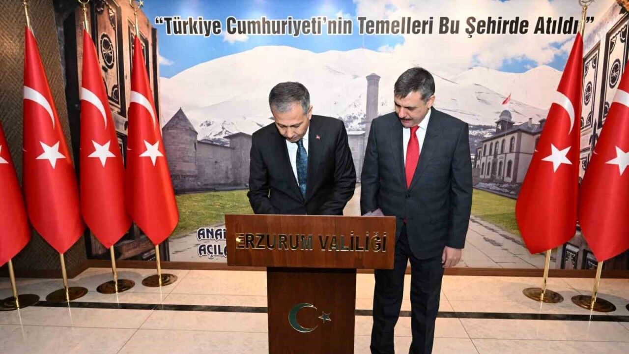 İçişleri Bakanı Yerlikaya’yı Erzurum’da ağırlamaktan duyduğu memnuniyeti dile getiren Vali Çiftçi, Bakan Yerlikaya’ya şehrin genel durumuyla ilgili bilgi verdi.