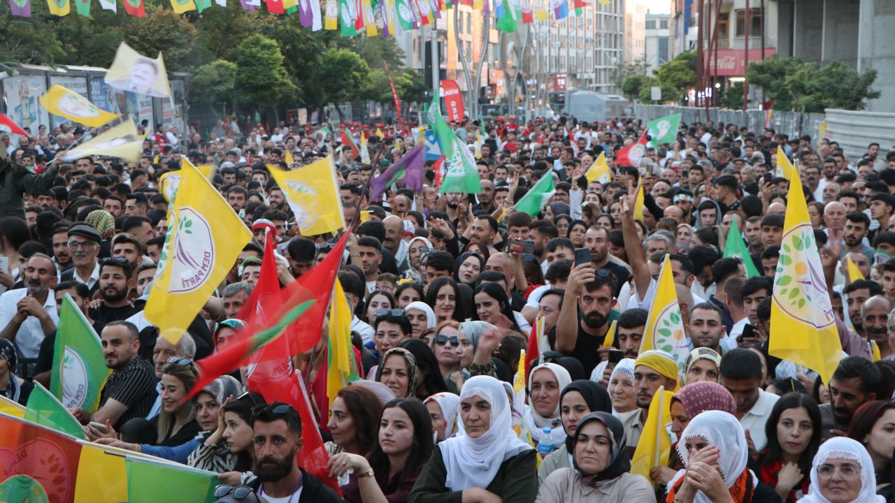 DEM Parti Eş Genel Başkanı Tuncer Bakırhan, partisinin düzenlediği ‘Barış ve Demokratik Toplum’ mitingine katıldı. Musa Anter Parkı önünde ‘Tecrit Değil, Özgürlük Kazanacak’ sloganıyla düzenlenen mitinge Bakırhan'ın yanı sıra milletvekilleri, belediye başkanları ve il yöneticileri katıldı. Mitingde konuşan Bakırhan, "Çok bedeller ödediniz, çok acılar çektiniz. Ama bütün acılara rağmen, bugün burada barış, demokrasi diyorsunuz, Öcalan'ın öncülüğünü yaptığı demokratik toplum ve barış sürecine sahip çıkıyorsunuz. İşte bu ırkçılar, o bu sürece karşı çıkanlar o Kürtlerin temel hak ve özgürlüklerinin bu ülkeyi böleceğini söyleyenler, bu meydandan büyük dersler çıkarmalıdır. Van halkı, Kürt halkı bütün acılara rağmen bütün yaşanmışlıklara rağmen barış diyor. Biraz vicdan, biraz onur varsa, acıları yaşayan bu halkın barışa sahip çıktığı kadar sahip çıkarsınız" dedi.