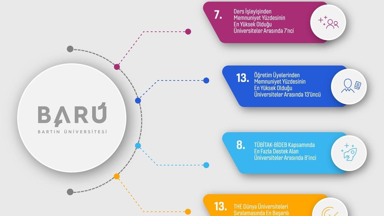 BARÜ, ders işleyişinden memnuniyet yüzdesinin en yüksek olduğu üniversiteler arasında 7'nci, öğretim üyelerinden memnuniyet yüzdesinin en yüksek olduğu üniversiteler arasında 13'üncü, TÜBİTAK BİDEB kapsamında en fazla destek alan üniversiteler arasında 8'inci oldu. Öğrenciler tarafından yürütülen sosyal sorumluluk projeleri göstergesinde ise BARÜ, 214 projesiyle 12'nci sıraya yerleşti. Son olarak kariyer merkezinin gerçekleştirdiği faaliyet sayısında da BARÜ, istikrarlı gelişimini bir kez daha ortaya koydu.