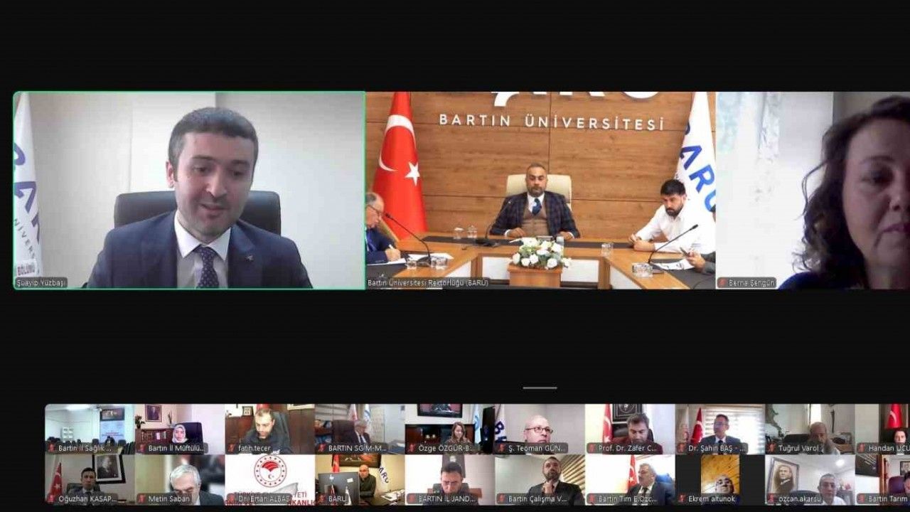 Bartın Üniversitesinde (BARÜ) akademik ve idari birimler ile dış paydaşların katılımıyla "Danışma Kurulu Toplantısı" düzenlendi. BARÜ Rektörü Prof. Dr. Ahmet Akkaya başkanlığında yapılan toplantıya il protokolü, kamu kurum ve kuruluşları ile sektör temsilcileri, fakülte dekanları ve meslek yüksekokulu müdürleri katıldı. Çevrim içi olarak düzenlenen toplantıda Rektör Yardımcıları Prof. Dr. Said Ceyhan, Prof. Dr. Yafes Yıldız, Genel Sekreter Mesut Kasap ile Rektör Danışmanı Dr. Öğr. Üyesi Özkan Avcı da yer aldı.