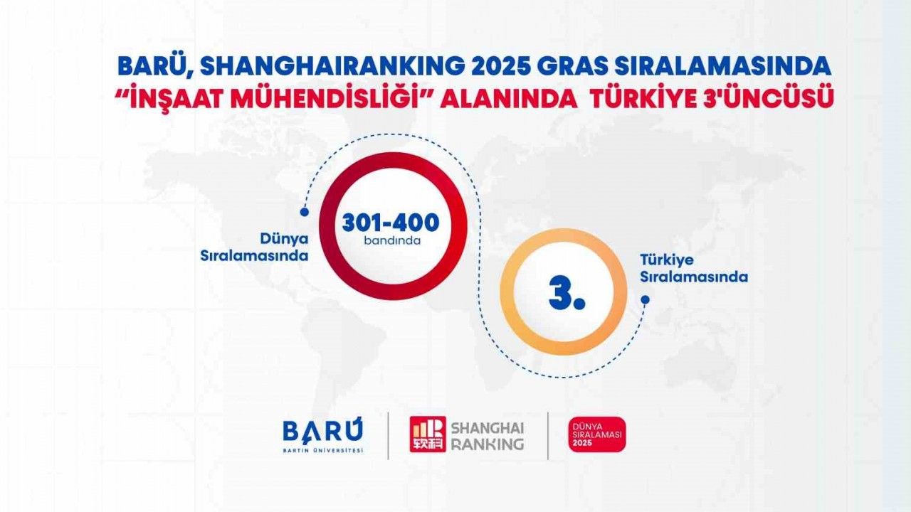 Yükseköğretim alanında dünya üniversitelerini, akademik alanlara sundukları bilimsel katkılar açısından değerlendiren en kapsamlı ve objektif değerlendirmelerden biri olan ShanghaiRanking 2025 yılı Akademik Alanların Küresel Sıralaması (Global Ranking of Academic Subjects - GRAS) yayımlandı. Bartın Üniversitesi (BARÜ) "İnşaat Mühendisliği" alanında dünyada 301-400 bandında sıralanırken Türkiye’de 3’üncü olma başarısı gösterdi.