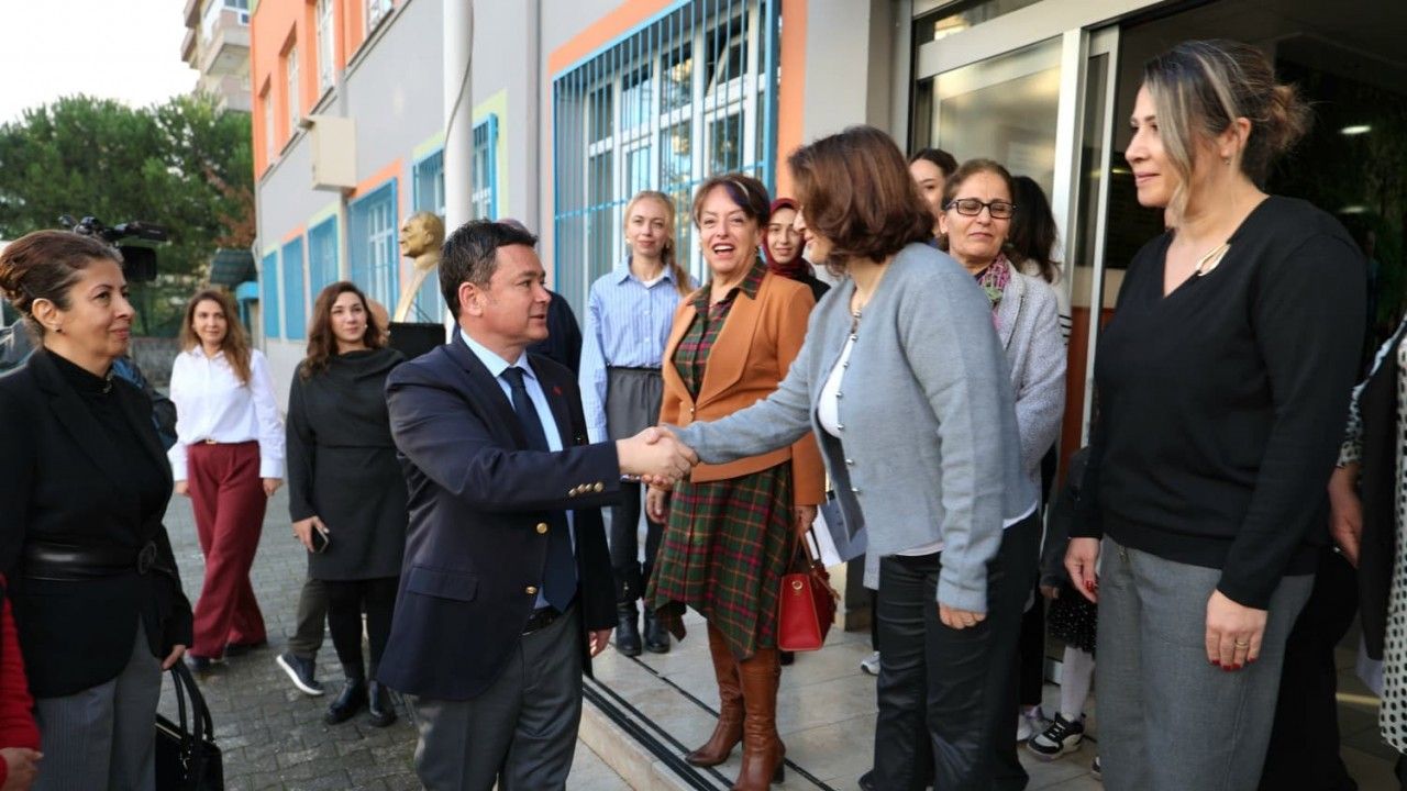 Osmangazi Belediye Başkanı Erkan Aydın, 24 Kasım Öğretmenler Günü’nde öğretmenleri okullarında ziyaret ederek onların özel gün sevincine ortak oldu. Yetiştirdikleri öğrencilerle ülkenin geleceğine yön veren öğretmenlerin 24 Kasım Öğretmenler Günü’nü kutlamak için Rahmiye Malcıoğlu İlkokulu ile Zübeyde Ana Kreş ve Gündüz Bakım Evi’ne giden Başkan Aydın, burada görev yapan eğitimcilerle günün önemini paylaştı. Program süresince sınıfları da dolaşan Aydın, öğrenciler ve öğretmenlerle uzun uzun sohbet ederek onların taleplerini yakından dinleme fırsatı buldu.