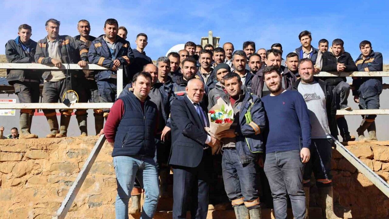 Ocaklarda çalışan işçilerin günlerini kutlayan Başkan Esat Öztürk, onlarla sohbet ederek birlikte yemek yedi. Konu ile ilgili açıklamalarda bulunan Başkan Öztürk; “4 Aralık Madenciler Günü münasebetiyle maden ocaklarını ziyaret ederek ocak sahiplerinin ve işçilerimizin bu anlamlı günlerini kutladık. Onlar zor bir sektörde çalışıyorlar. Yeri geliyor yerin yüzlerce metre altından maden çıkarıyorlar. Ben hem iş adamlarımıza hem de işçilerimize kolaylıklar diliyorum. Rabbim kazadan beladan korusun. İlçe olarak madencilik sektöründe iyi bir durumdayız. Türkiye’nin en büyük 2. Demir Maden Ocağı ilçemizde bulunmaktadır. Bu sektörde çalışan insanlarının kazançları annelerinin ak sütü kadar helal olduğuna inanıyorum. Biz, bu sektörde faaliyet gösteren iş adamlarımıza hem dua ediyoruz, hem de teşekkür ediyoruz. Çünkü ilçemizde bu sektörde dolaylı yoldan 10 bin vatandaşımız ekmek yiyor. Biz onlarla gurur duyuyoruz” ifadelerini kullandı.