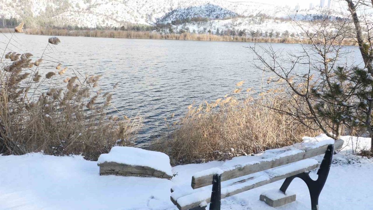 Ankara'da dün gece saatlerinde etkili olan kar yağışı, Eymir Gölü'nü beyaza bürüdü. Yılbaşı tatilini fırsata dönüştüren vatandaşlar, karın keyfini çıkarmak için Eymir Gölü'nü ziyaret etti.