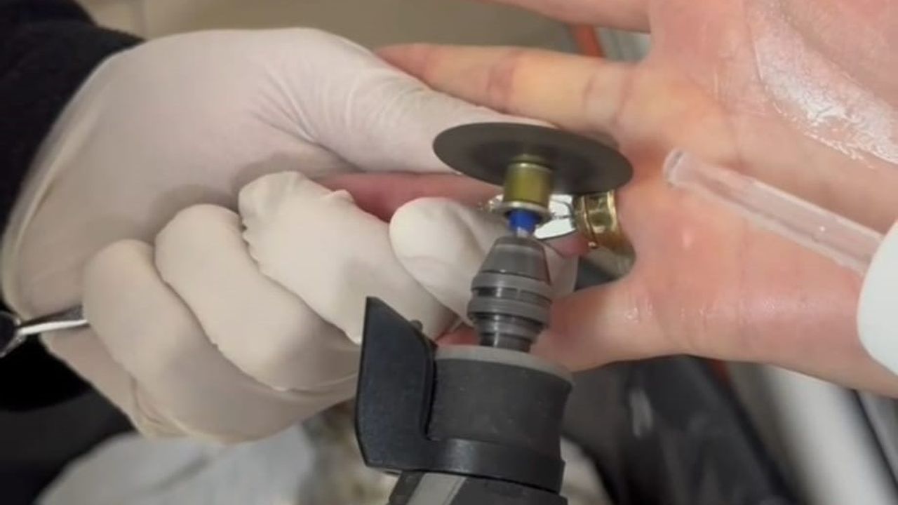 Parmağına sıkışan iki yüzüğü kendi imkanıyla çıkaramayan bir kadın, Batman İluh Devlet Hastanesi Acil Servisi’ne, geldi. Şişlik ve ağrı oluşan kadının parmağındaki yüzük çıkarılamayınca durum itfaiye ekiplerine bildirildi. Hastaneye kısa sürede ulaşan itfaiye erleri, doktorların gözetiminde özel bir operasyon başlattı. Parmağa zarar vermemek için büyük bir hassasiyetle çalışan ekip, küçük kesici spiral makine kullanarak parmağına sıkışan yüzükler güvenli bir şekilde kesilerek çıkartıldı.
