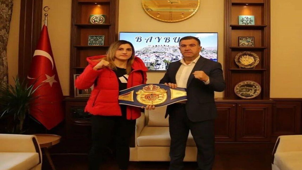 Dünya Boks Federasyonu (WBF) tarafından organize edilen Dünya Boks Şampiyonası finalinde Arjantinli rakibini yenerek Türkiye’ye ilk şampiyonluğu kazandıran Bayburtlu sporcu Elif Nur Turhan, unvanını korumak için çıkacağı şampiyonluk maçı öncesinde Antrenörü Amur Ulusal ve babası Arif Turhan ile birlikte Vali Eldivan’a ziyarette bulundular.