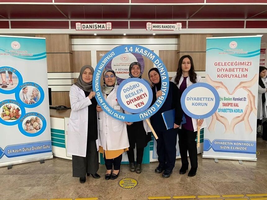 Diyabet konusunda farkındalığı arttırmak amacıyla 14 Kasım Dünya Diyabet Günü dolayısıyla Bayburt Devlet Hastanesi poliklinik giriş katında uzman kişilerce parmak ucu şeker taraması yapıldı.