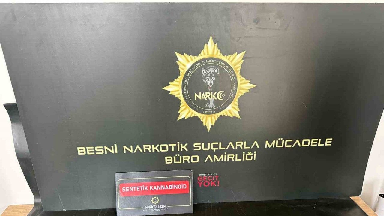 Edinilen bilgilere göre, Besni Narkotik Suçlarla Mücadele Büro Amirliği ekipleri, bir şahsın üzerinde yüklü miktarda uyuşturucu madde bulunduğu yönünde gelen ihbar üzerine çalışma başlattı. Gerçekleştirilen operasyon sonucunda V.S. isimli şüpheli yakalandı. Şahsın üzerinde yapılan aramada 50 gram sentetik kannabinoid maddesi ele geçirildi.