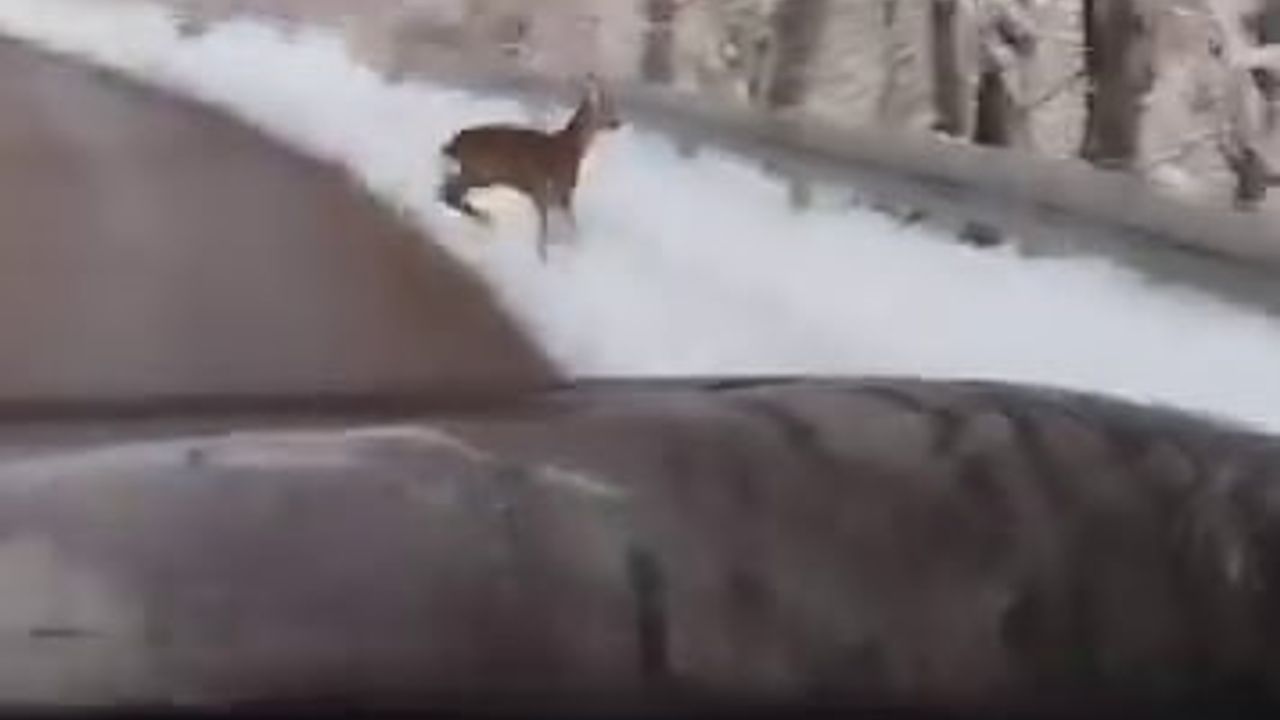 Sakarya'nın yüksek kesimlerde etkili olan kar yağışı, hayatı olumsuz etkilese de kartpostallık görüntüleri ve doğanın neşesini de beraberinde getirdi. Kar keyfi yapmak için Akyazı ilçesi Güzlek Mahallesi mevkiinde giden bir aile, karlı yola inen karaca ile karşılaştı. Bir süre araç içindeki aileye bakan karaca, daha sonrasında ormanlık alana doğru koşmaya başladı. O anlar ise aile tarafından saniye saniye görüntülendi.