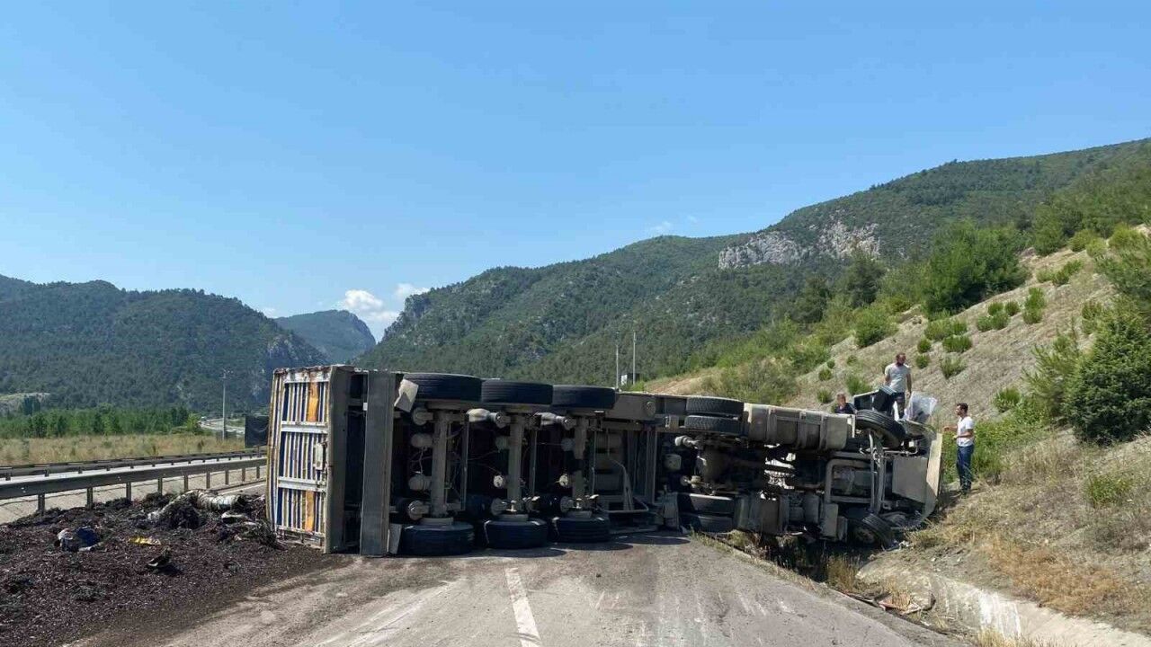 Alınan bilgilere göre; Bilecik’te Eskişehir istikametine seyir halinde olan Mehmet Kara (42) yönetimindeki 11 AAT 612 plakalı hurda yüklü tır, Ertuğrulgazi Tüneli’ne gelmeden sürücünün direksiyon hakimiyetini kaybetmesi sonucu kontrolden çıkarak orta refüje çarpıp yola devrildi. Kazada araç sürücü Mehmet Kara yaralandı. Yaralı olay yerine gelen sağlık ekiplerince yapılan ilk müdahalenin ardından Bilecik Eğitim ve Araştırma Hastanesine kaldırıldı. Yaralının sağlık durumun iyi olduğu öğrenilirken, jandarma kazayla ilgili inceleme başlattı.